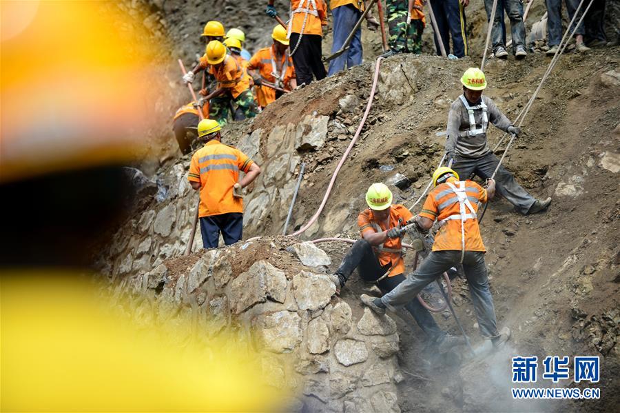 7月28日,搶險人員在寶成鐵路山體崩塌搶險現(xiàn)場進(jìn)行搶修作業(yè)。新華社發(fā)(唐振江 攝)