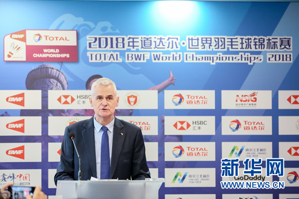 7月17日,國際羽聯首席運營官斯圖爾特·博里在抽簽儀式上講話。 當日,2018年羽毛球世錦賽抽簽儀式在馬來西亞吉隆坡舉行。本屆羽毛球世錦賽將于7月30日到8月5日在中國南京舉行。 新華社記者朱煒攝