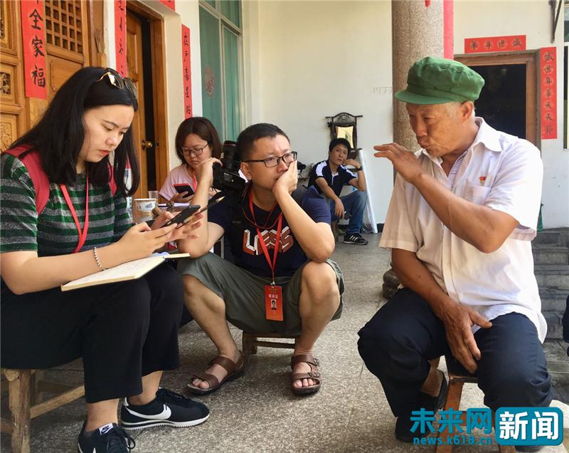 尹相明(右)在向記者介紹崇仁村這些年的發展變化。未來網記者 程婷 攝