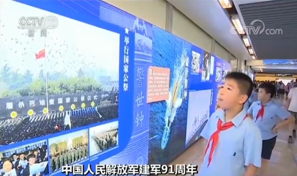 八一前夕,江蘇南京市首個國防教育主題車站建成開放,地鐵通道“變身”國防展覽展廳,營造濃厚八一節日氛圍。展覽主題為“愛我國防愛我軍”,一幅幅圖片濃縮著人民軍隊91年的光輝歷程。聲光電立體展示,吸引來往乘客和市民駐足參觀。