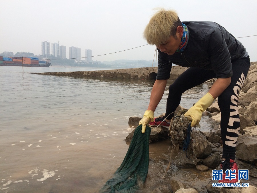 2016年12月3日,“三峽蟻工”組織發(fā)起人李年邦在江灘邊撿垃圾。2016年10月,在李年邦的發(fā)起下,“三峽蟻工”志愿者組織正式成立,300多名固定成員成為長江垃圾清理的主力軍,他們以“保護(hù)長江母親河”為口號,每逢周末和法定節(jié)假日都會自發(fā)組織在長江岸邊撿拾垃圾。 新華社記者 王自宸 攝