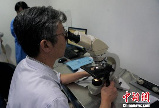 浙江省腫瘤醫院病理科主任醫師、科主任 孫文勇正在閱片。 張詩雨 攝