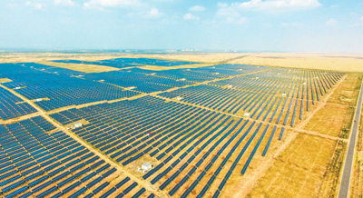 庫布其沙漠生態太陽能發電綜合示范地。虞東升攝(新華社發)