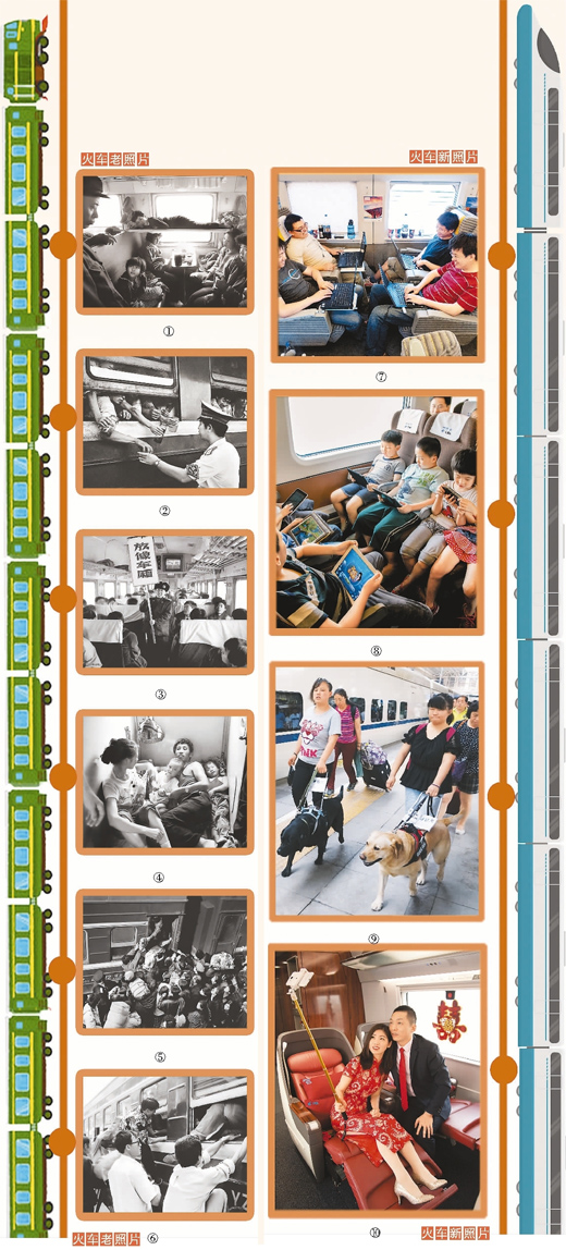 從綠皮車到紅皮車,從藍皮車到白皮車,再從“和諧號”到“復興號”,火車與鐵路一直在變,火車上的中國人亦步履不停。時代更迭,而跨越時空保持不變的,是由火車承載著的奔向偉大目標的旺盛活力。看,那出發的信號燈再次亮起,人們與祖國永遠行駛在奮進的道路之上!(嚴 冰 袁苗苗 高明靜)