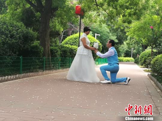 “結(jié)婚這么多年,老伴經(jīng)常念叨,說我不夠浪漫,從不給她過情人節(jié),今天我不僅陪她過了節(jié)還補拍了婚紗照,以后我也要跟年輕人學(xué)學(xué),經(jīng)常給老伴送花送禮物。”看著穿婚紗的老伴,68歲的王在民老人笑得一臉幸福。