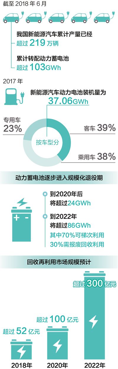 在政策和市場環境的雙重因素影響下,我國新能源汽車產量和保有量都已超全球總量的一半。據行業專家從企業質保期限、電池循環壽命、車輛使用工況等方面綜合測算,2018年后,我國新能源動力蓄電池將進入規?;艘燮?,預計2020年累計退役量將超過20萬噸。如果這些電池處置不當,一方面會給社會帶來環境影響和安全隱患,另一方面也會造成資源浪費。