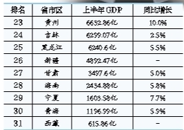北青報記者統計發現,上述31省(市、區),經濟增速排名第一的是貴州,為10%;緊隨其后的是云南和江西,增速分別為9.2%和9.0%。