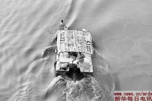 巢湖沿岸最大藻水分離站實施機械化藍藻打撈,全天24小時作業(yè)仍不能滿足打撈需求。在巢湖和派河的交界水域,一艘白色大船正緩緩前進,所到之處濃綠的藻水從船首處被吸入船體,澄清的湖水從船尾重新流入巢湖,這是今年剛剛投入使用的新式“藍藻打撈神器”磁捕船。