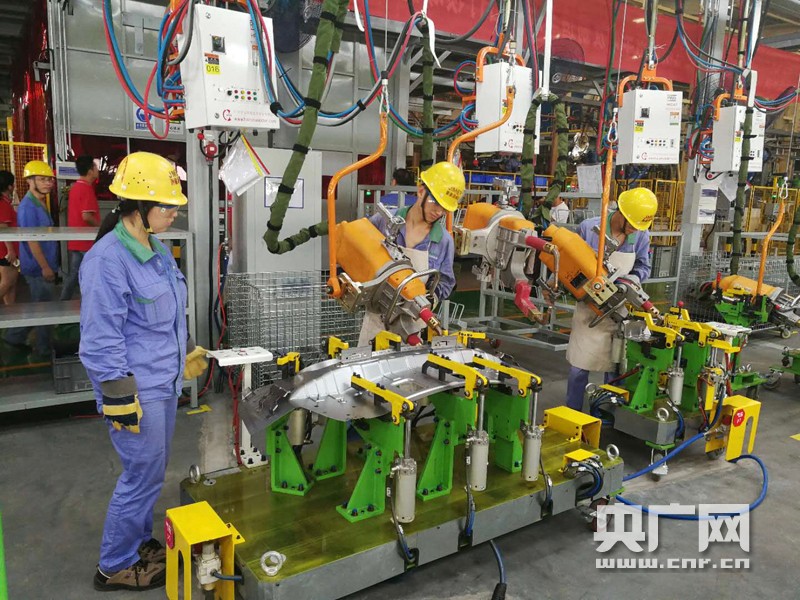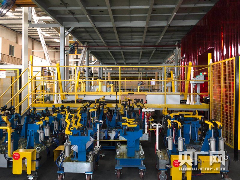 記者來到總裝車間內,焊裝機器正不間斷的工作著。