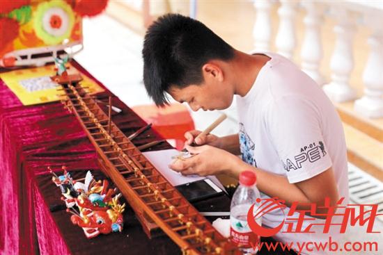 這位年僅16歲的小伙黃智冬,是個(gè)名副其實(shí)的傳統(tǒng)文化愛好者,同齡人在玩手機(jī)吃雞游戲時(shí),他的大部分時(shí)間都花在制作龍舟頭、麒麟頭模型上,“我只要做起龍舟頭來(lái),手機(jī)就放在一旁,有時(shí)候一下午就過(guò)去了。”