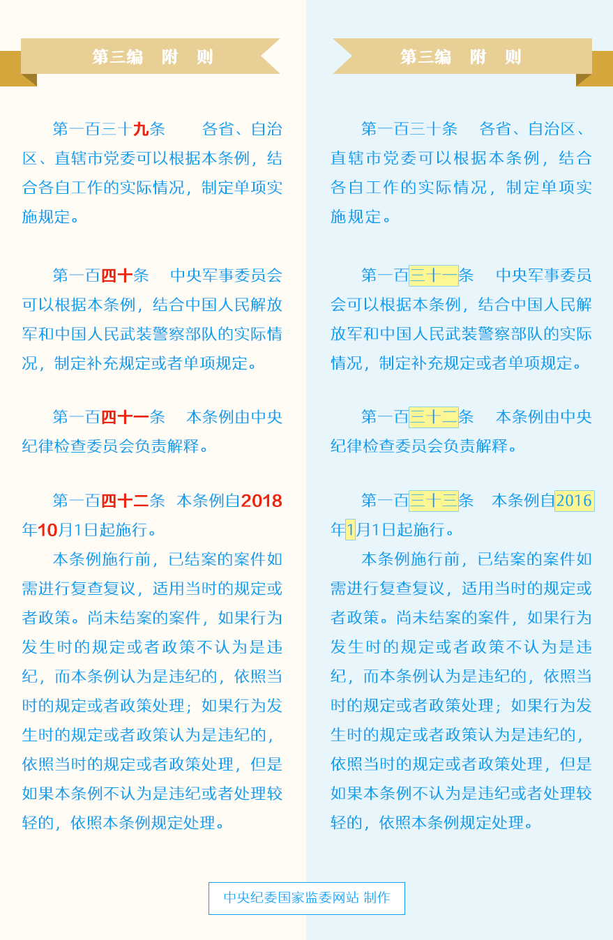 《中國共產黨紀律處分條例》修訂前后對照表-新華網