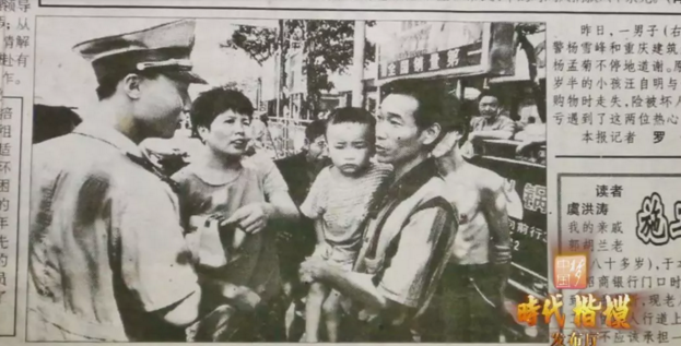 有兩個(gè)陌生男子,聲稱(chēng)是他的爸爸,試圖領(lǐng)走他。幸虧遇到了剛參加工作不久的21歲民警楊雪峰。楊雪峰抱著他找遍了整個(gè)百貨公司,終于找到了滿(mǎn)頭大汗焦急萬(wàn)分的爸爸。