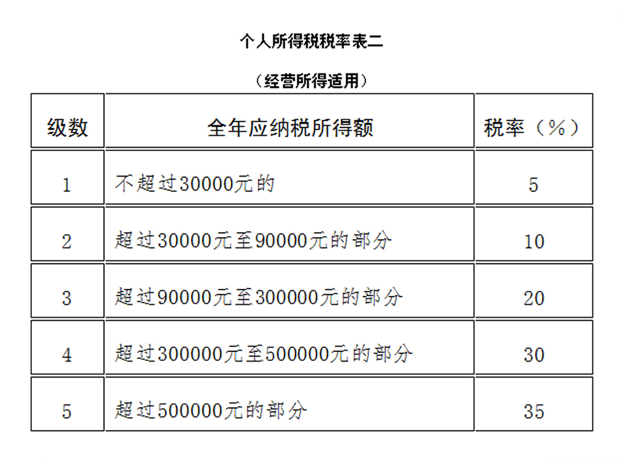“(二)經(jīng)營所得,適用百分之五至百分之三十五的超額累進(jìn)稅率(稅率表附后);