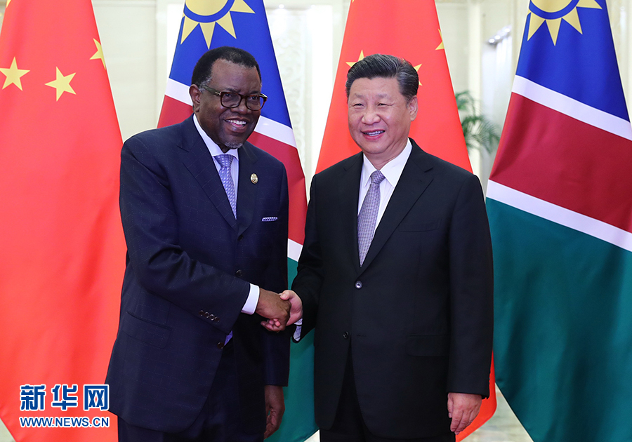 9月2日,國家主席習(xí)近平在北京人民大會堂會見納米比亞總統(tǒng)根哥布。新華社記者 謝環(huán)馳 攝