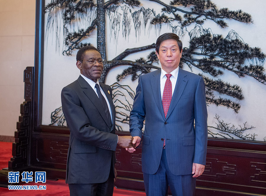9月2日,全國人大常委會委員長栗戰書在北京人民大會堂會見赤道幾內亞總統奧比昂。? 新華社記者 翟健嵐 攝