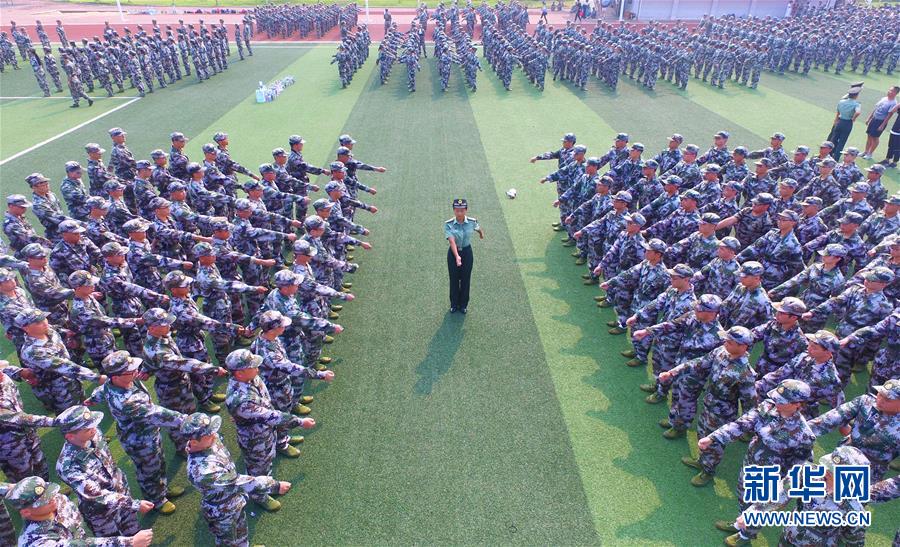 9月5日,在位于湖南省衡陽市的南華大學(xué)雨母校區(qū),周莉慧(中)帶領(lǐng)學(xué)生們軍訓(xùn)。新華社發(fā)(曹正平 攝)