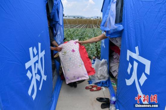 資料圖:民眾在救災帳篷內搭建臨時床鋪。 中新社記者 任東 攝