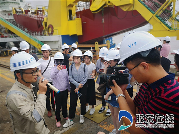 在啟東海工船舶工業園,隨著機械的轟鳴聲,呈現在采訪團眼前的是船臺密布、塔吊林立、一派繁忙的景象。尤為引人矚目的,是大國重器“天鯤號”,巨大的船體以藍色為主,與碧海藍天共同構成了一幅氣勢磅礴的畫卷。