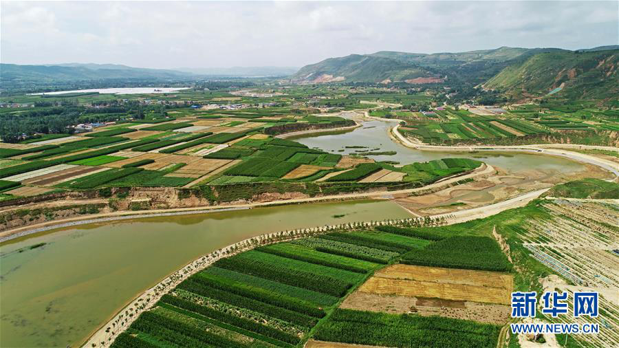 經過治理后的寧夏固原市西吉縣葫蘆河(8月8日無人機拍攝)。新華社記者王鵬攝