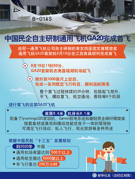 圖表:中國民企自主研制通用飛機(jī)GA20完成首飛 新華社發(fā) 邊紀(jì)紅 制圖