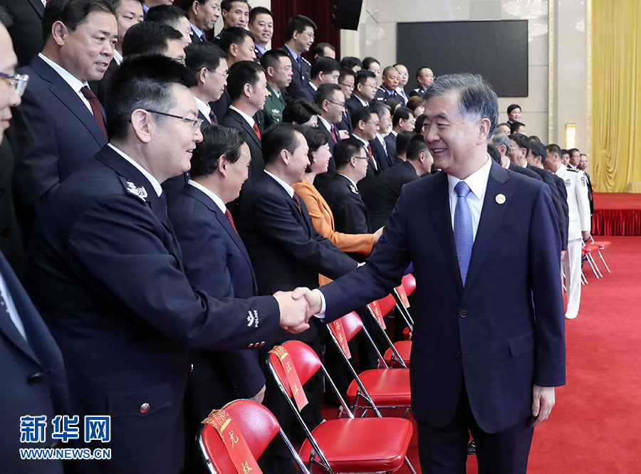 9月19日,中共中央政治局常委、全國政協主席、中央代表團團長汪洋率代表團部分成員分別赴寧夏軍區、武警寧夏總隊慰問,并會見自治區政法系統代表。這是汪洋會見自治區政法系統代表。 新華社記者 劉衛兵 攝