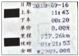 王珂前往長沙的出租車票
