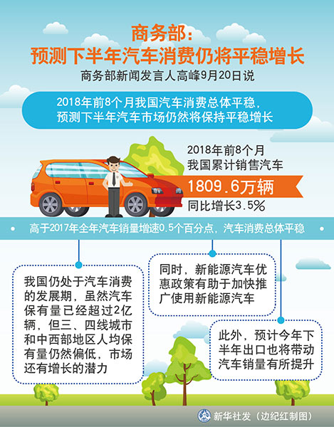 圖表:商務部:預測下半年汽車消費仍將平穩增長 新華社發 邊紀紅 制圖