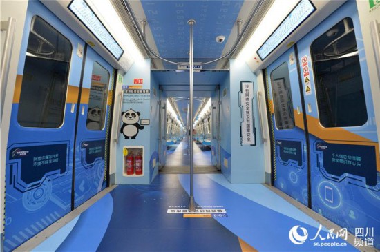 圖注:成都為2018年國家網絡安全宣傳周設計的地鐵主題列車“安安號”(攝影 王軍)