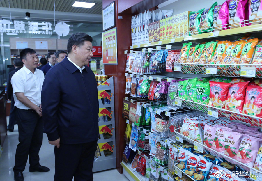 結(jié)束在遼寧撫順的考察活動(dòng)后,28日中午,習(xí)近平總書記乘車返回沈陽。中途在服務(wù)區(qū)短暫休息時(shí),習(xí)近平特意走進(jìn)旁邊超市,仔細(xì)察看、詢問商品價(jià)格和品質(zhì),還掏錢買了一袋江米條、一罐醬香什錦菜、兩盒溝幫子熏雞,一共花了131元。(文字記者張曉松、攝影記者鞠鵬)?