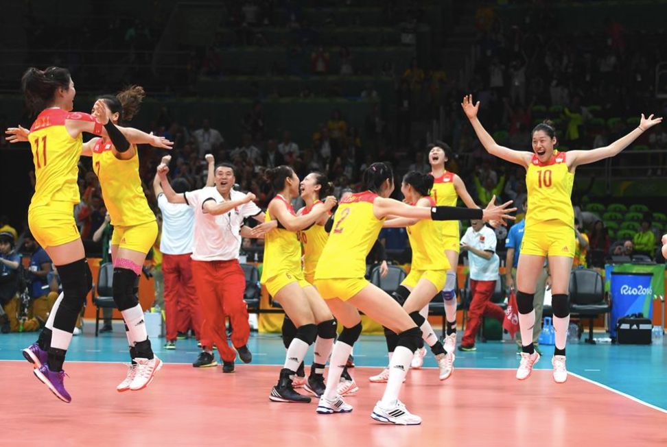 在2016年里約奧運(yùn)會(huì)女子排球決賽中,中國(guó)隊(duì)以3比1戰(zhàn)勝塞爾維亞隊(duì),奪得冠軍。新華社記者 李尕 攝