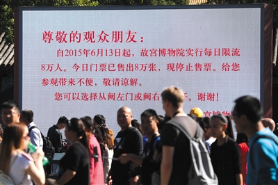 昨天是國慶假期第二天,也是故宮傳統(tǒng)的全年游覽高峰日。自2015年實(shí)行每日限流8萬人次以后,故宮游覽高峰不再體現(xiàn)在游客數(shù)量,而是體現(xiàn)在“搶票”的激烈程度上。早在9月30日上午,10月2日的故宮門票就在網(wǎng)上銷售一空。