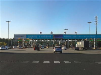 昨天清晨7時20分,京開高速榆垡南收費(fèi)站未出現(xiàn)大規(guī)模擁堵現(xiàn)象。 新京報記者 裴劍飛 攝