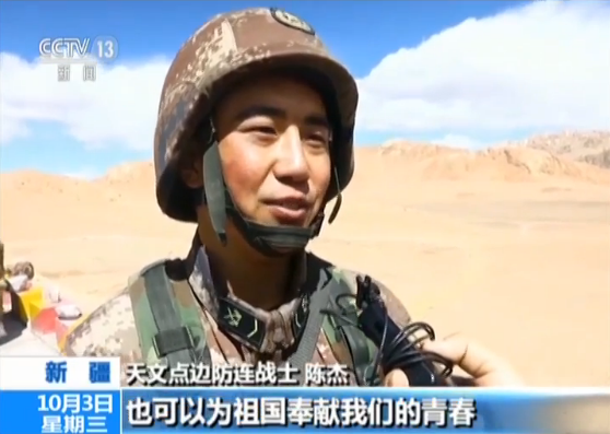 天文點(diǎn)邊防連戰(zhàn)士 陳杰:我們?cè)谶@地方待著,燃燒的是自己的青春,守候的確實(shí)是一種寂寞,肩負(fù)的是和平,握著的是責(zé)任。