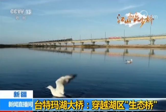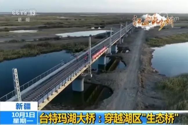 鐵路穿越湖區的方式,由最初在湖面干涸區鋪軌變成現在的橫跨臺特瑪湖的方案。750座橋墩撐起了高15米,長24.5公里的橋面,未來列車將通過大橋在空中穿越臺特瑪湖,大大降低了鐵路建設對湖水造成的影響。