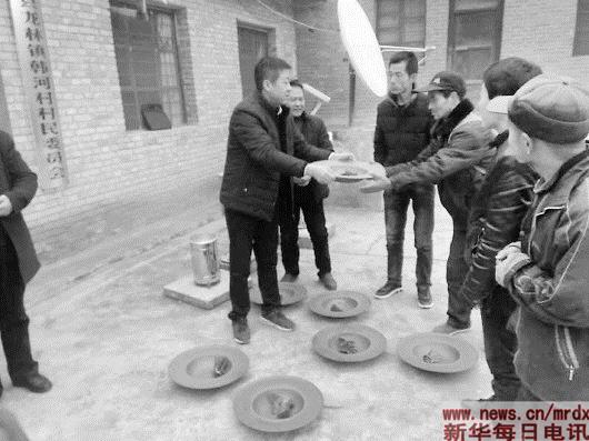 ▲秦彥軍(左二)生前為群眾發放過冬用火盆。