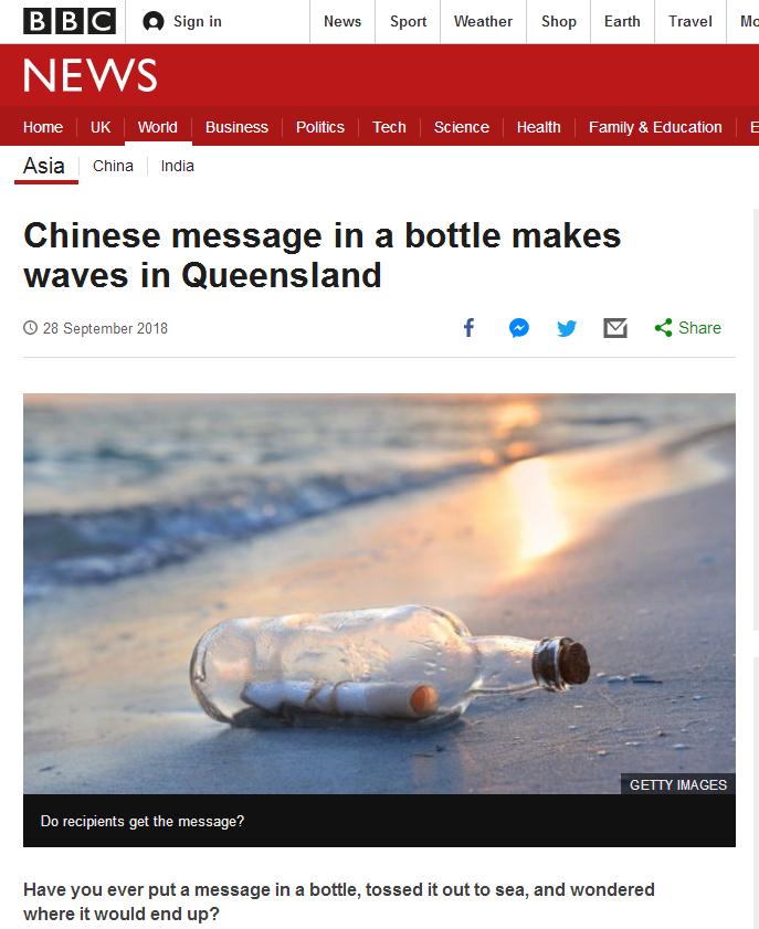 9月29日,新西蘭廣播電臺(RNZ)轉載了英國廣播公司的這篇報道,稱中國海員的這封情書已經在澳大利亞引起轟動。