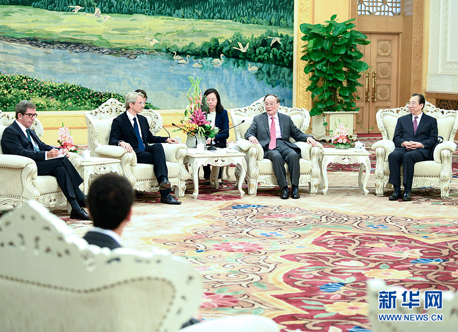 10月15日,國家副主席王岐山在北京人民大會堂會見出席第六屆中法青年領(lǐng)導(dǎo)者論壇的雙方代表。新華社記者 燕雁 攝