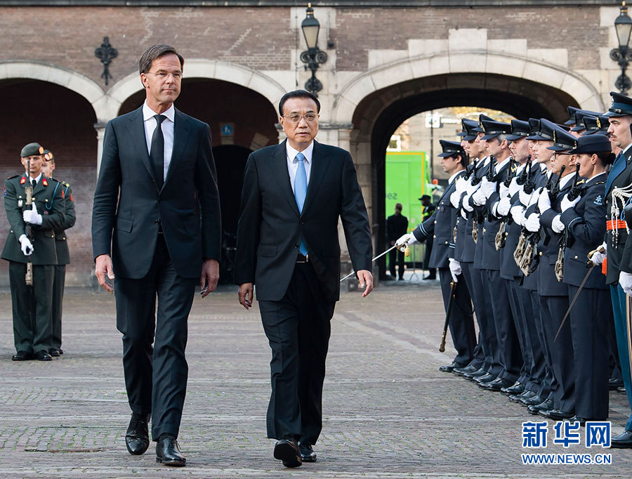 會談前,呂特在海牙議會大廈廣場為李克強舉行隆重歡迎儀式。當車隊抵達時,呂特迎請李克強共同登上檢閱臺并陪同李克強檢閱儀仗隊。軍樂隊高奏中荷兩國國歌,兩國國旗迎風飄揚。