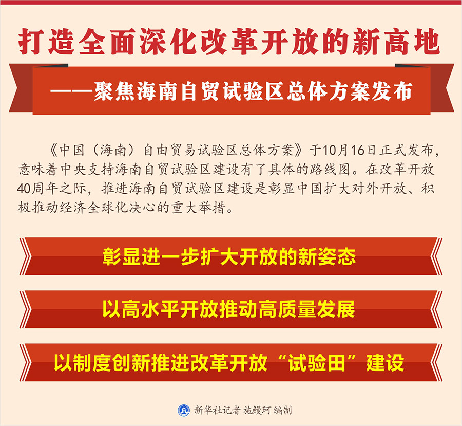 新華社北京10月16日電? 題:打造全面深化改革開放的新高地——聚焦海南自貿試驗區總體方案發布