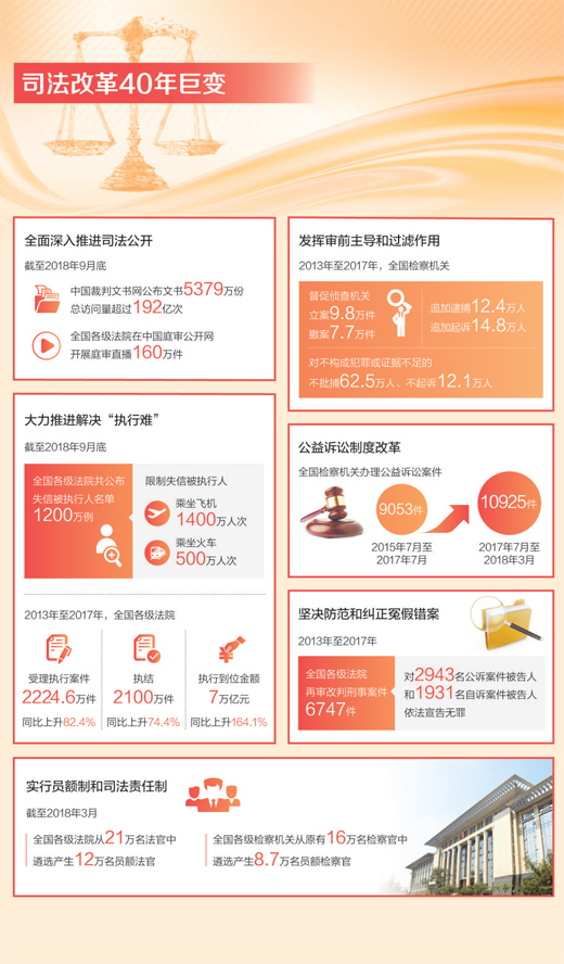 原標(biāo)題? 法安天下 守護公平正義(大數(shù)據(jù)觀察·壯闊東方潮 奮進新時代——慶祝改革開放40年·數(shù)說)