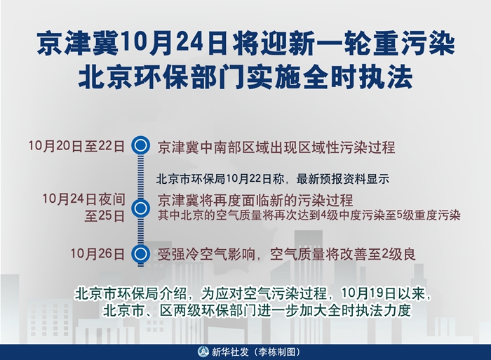 圖表:京津冀10月24日將迎新一輪重污染 北京環保部門實施全時執法 新華社發 李棟 制圖
