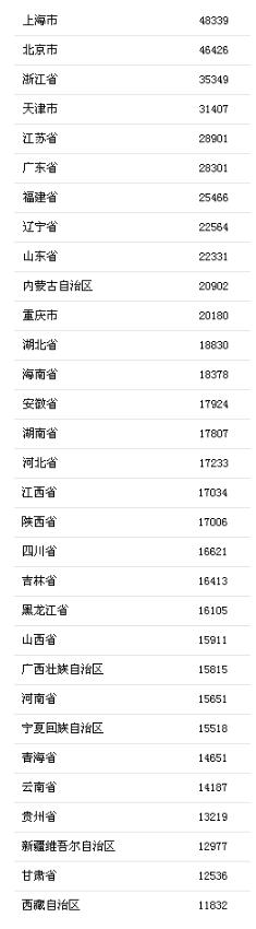 前三季度31省區(qū)市人均可支配收入。來自國家統(tǒng)計(jì)局