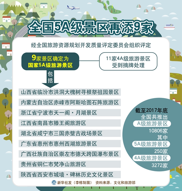 全國5A級景區再添9家 新華社發 李棟 制圖