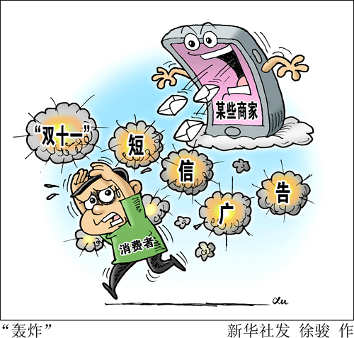 離“雙十一”到來尚有一周,但廣告已先行“轟炸”好幾輪。短信、電話、彈窗……促銷廣告以各種形式密集“攻占”消費者的視覺、聽覺和信息獲取的渠道空間,令不少人抱怨“不勝其煩”。