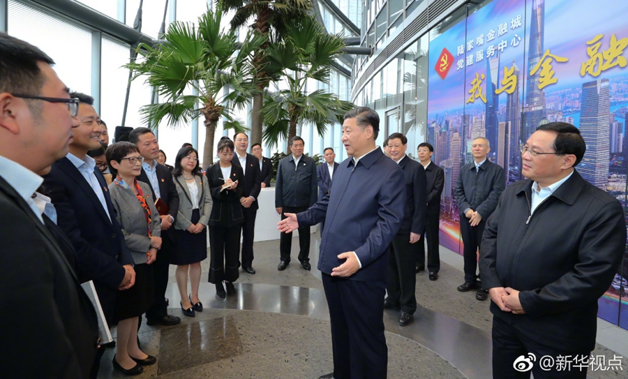 6日上午,習近平來到位于上海市浦東新區陸家嘴的上海中心大廈,視察陸家嘴金融城黨建服務中心,了解城市樓宇黨建工作情況。 ????