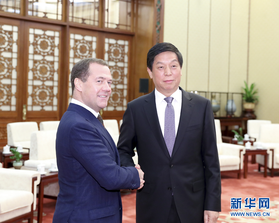 11月7日,全國人大常委會委員長栗戰書在北京人民大會堂會見俄羅斯總理梅德韋杰夫。 新華社記者丁海濤攝