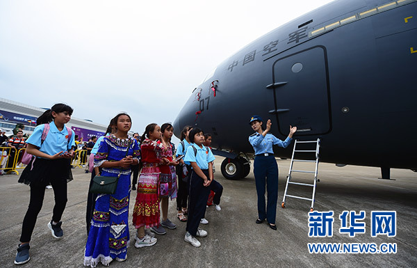 藍天春蕾女童在航展現場參觀(11月10日攝)。 新華社發(陳藝 攝)