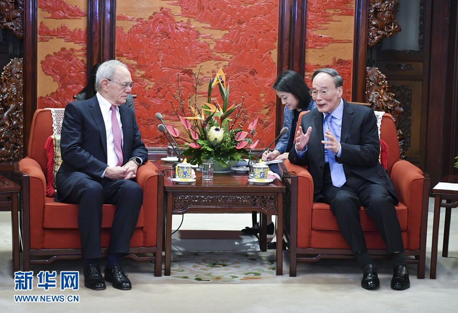 11月12日,國家副主席王岐山在北京中南海會(huì)見校長里夫率領(lǐng)的麻省理工學(xué)院理事會(huì)執(zhí)委會(huì)成員。 新華社記者 殷博古 攝
