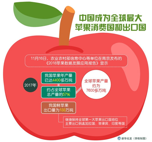 中國(guó)成為全球最大蘋果消費(fèi)國(guó)和出口國(guó) 新華社發(fā) 李棟 制圖