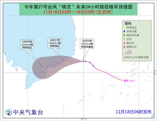 大風預報:18日08時至19日08時,南海西南部偏西海域和越南東南部沿海的風力仍可達6-8級,部分海域和地區陣風9-10級。